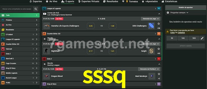 O sssq oferece uma grande seleção de opções de apostas em e-sports com probabilidades competitivas